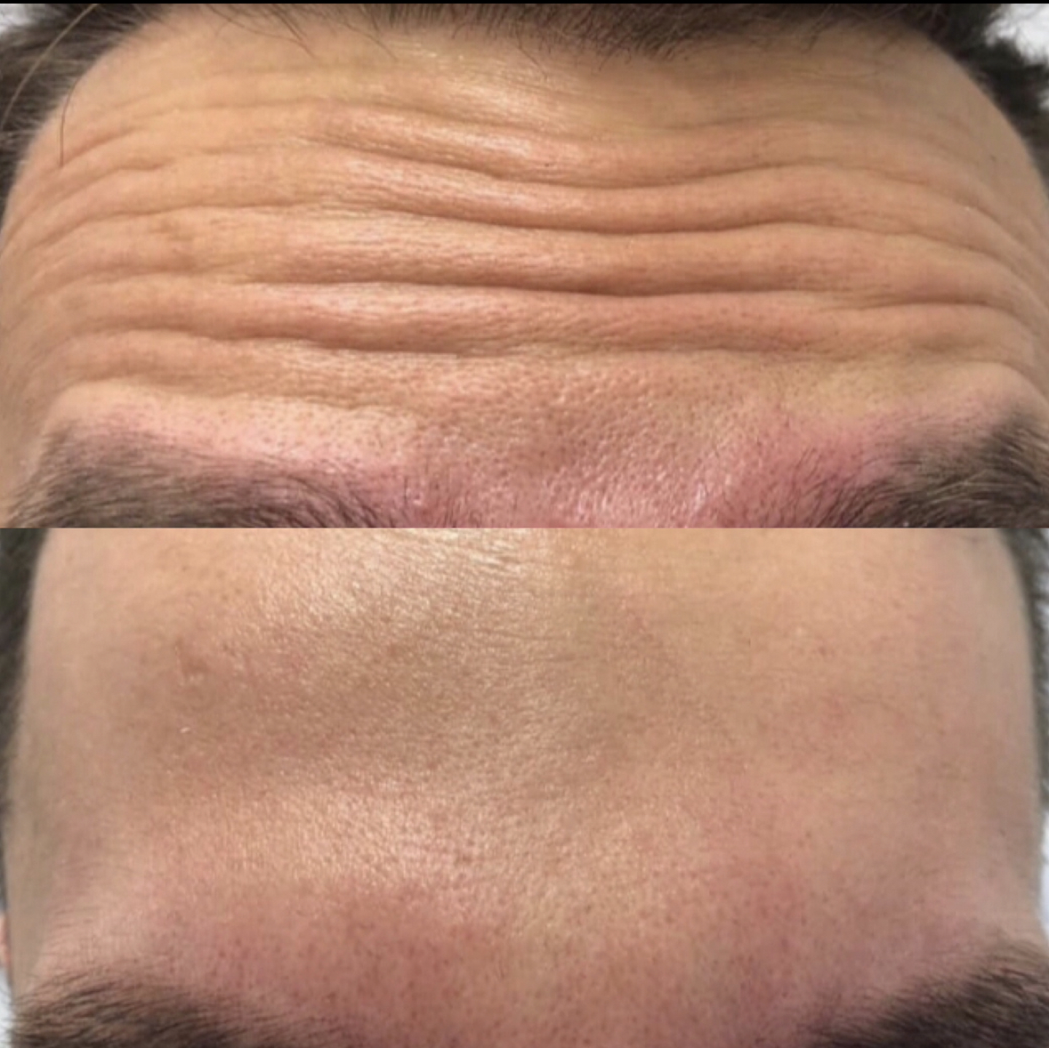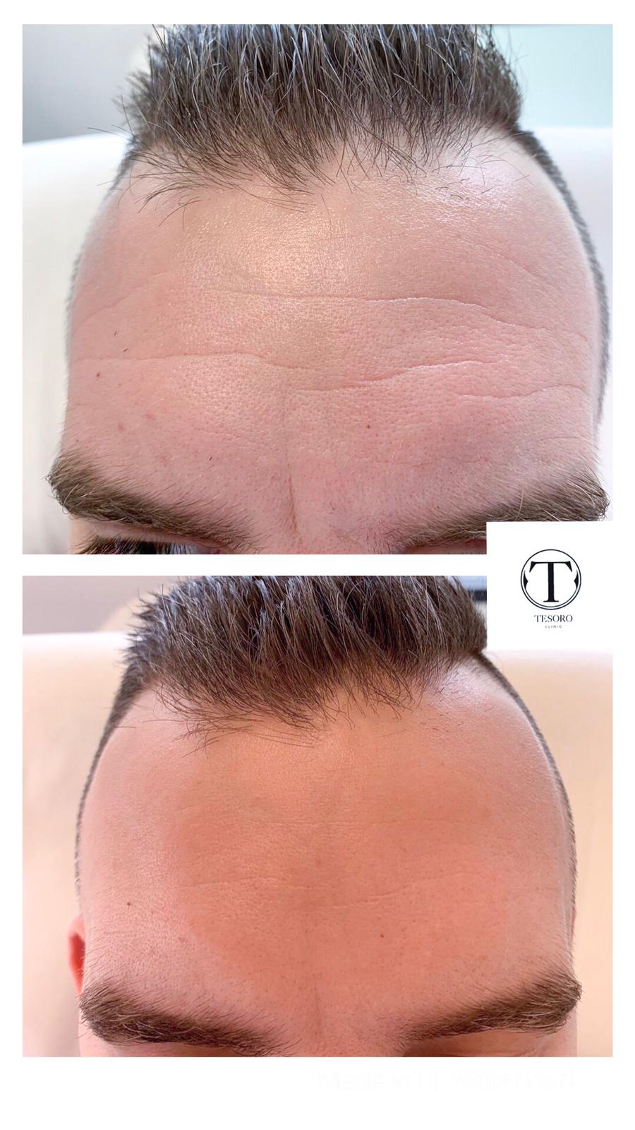 Powyżej przedstawiamy, jakie efekty daje botoks na czoło oraz botoks na kurze łapki.