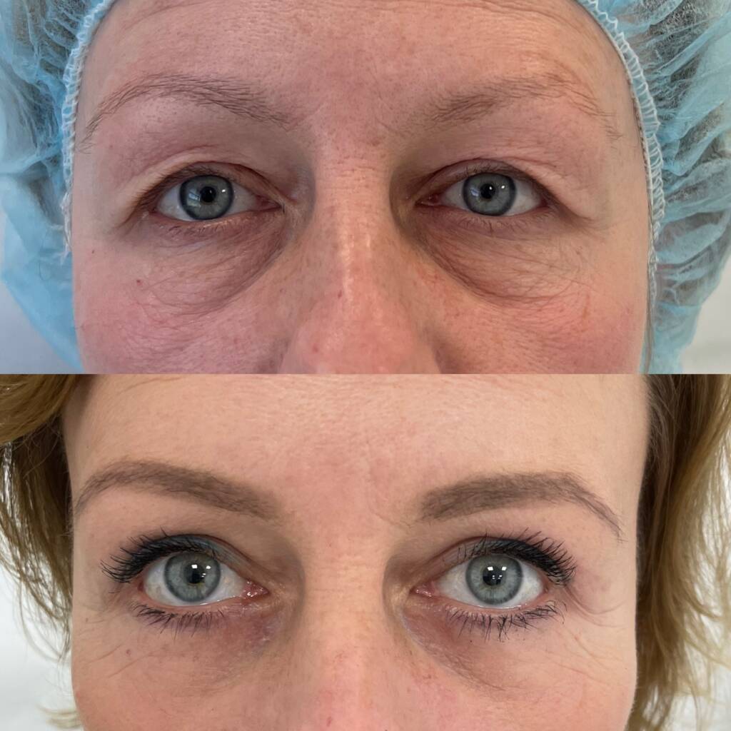 Blizna po plastyce powiek dolnych przebiega tuż pod linią rzęs i w stronę boczną – po okresie rekonwalescencji staje się niemal niewidoczna. Pacjentki często podkreślają, że nie jest dostrzegalna nawet przy profesjonalnym makijażu.