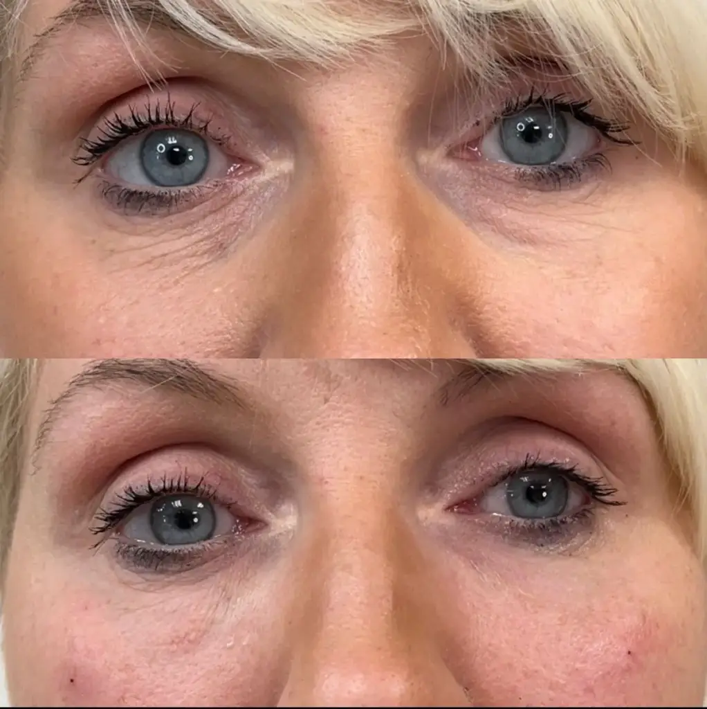 - wygładzenie i wypełnienie zapadnięć pod oczami,